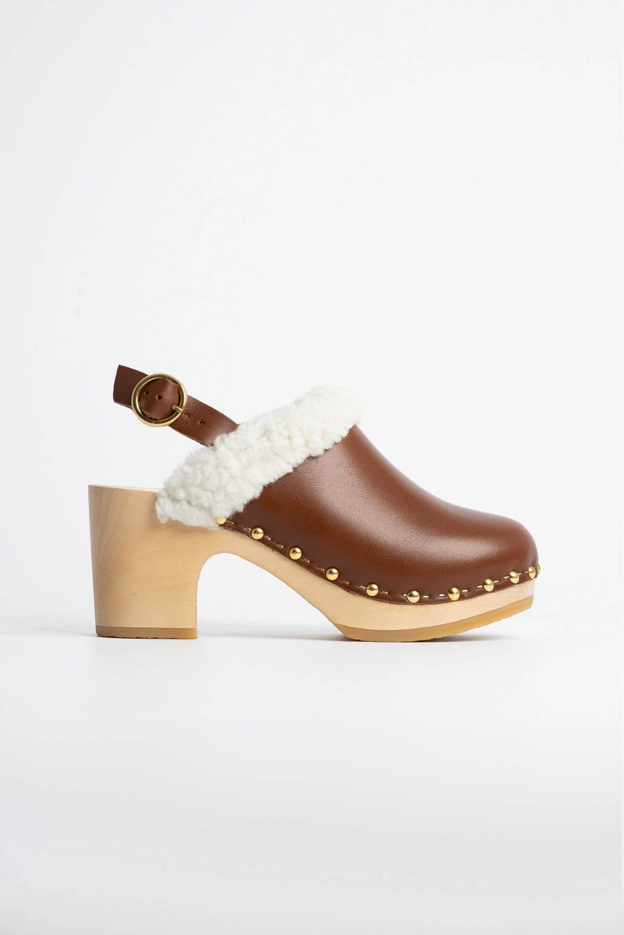 Pensé comme un cocon pour l’hiver, le modèle YBOO FUR NATUREL VEGETAL HAVANA réconcilie chaleur, maintien et allure. Né de l’envie de revisiter les sabots traditionnels en version réconfortante, il allie le cuir havane pleine fleur à tannage végétal à la douceur d’une doublure en laine naturelle. La semelle en bois de tilleul assure isolation et légèreté, tandis que la bride réglable à boucle dorée rappelle l’artisanat d’autrefois, avec une note élégante. Posés un à un à la main, ses 42 clous dorés viennent souligner le galbe de cette silhouette au talon stable de 7,5 cm.
