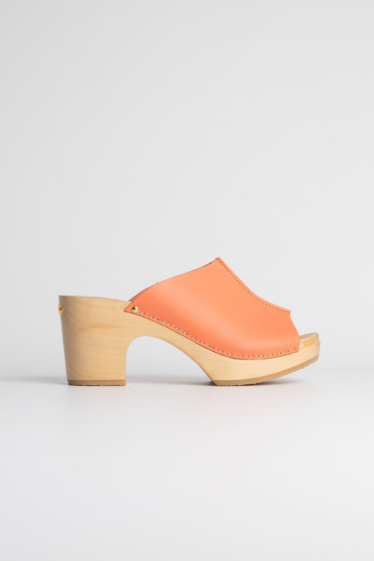 Les sabots mules YDOL, fabriqués en cuir de vachette pleine fleur à tannage végétal, sont relevés d'une jolie couture inversée sur le dessus.