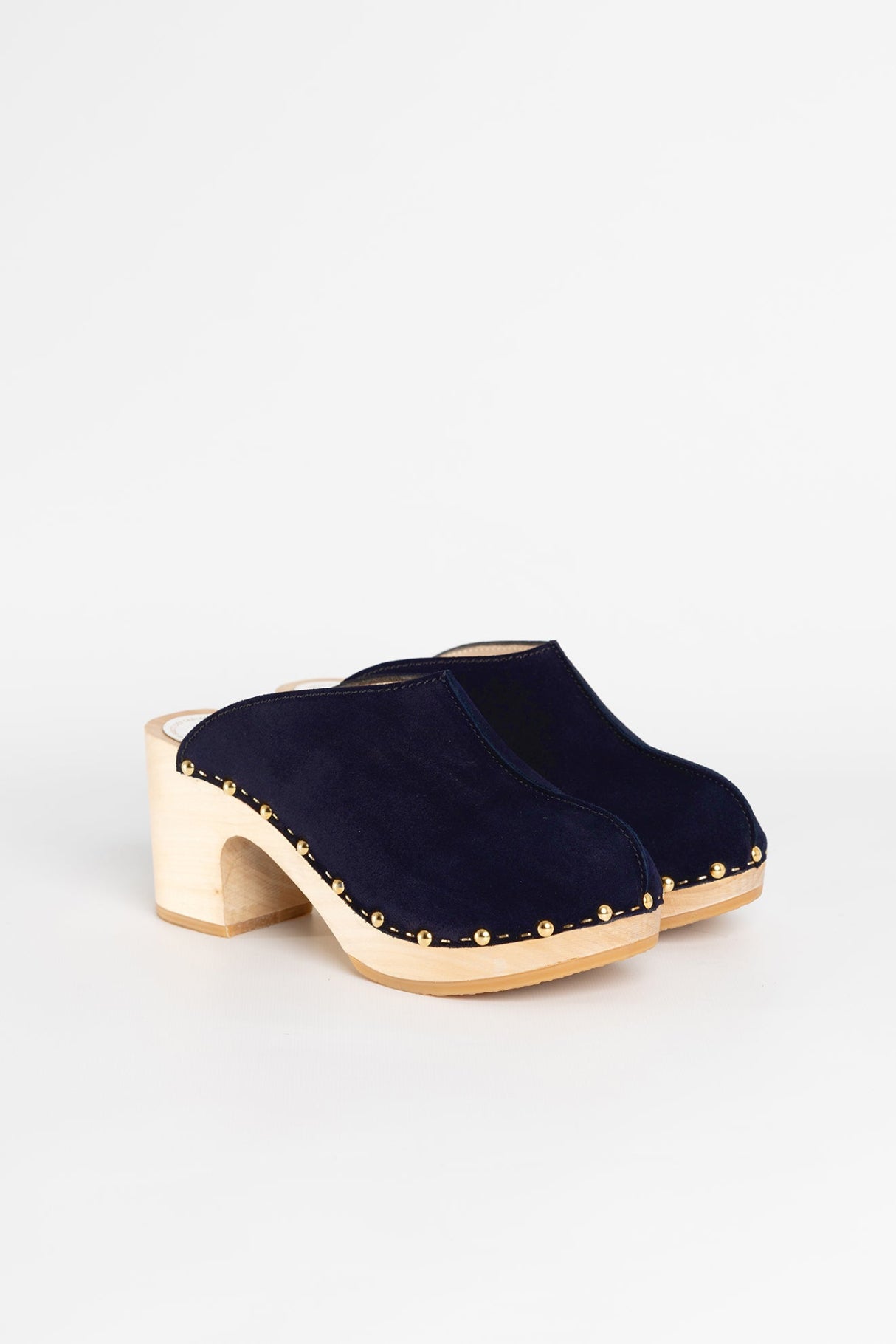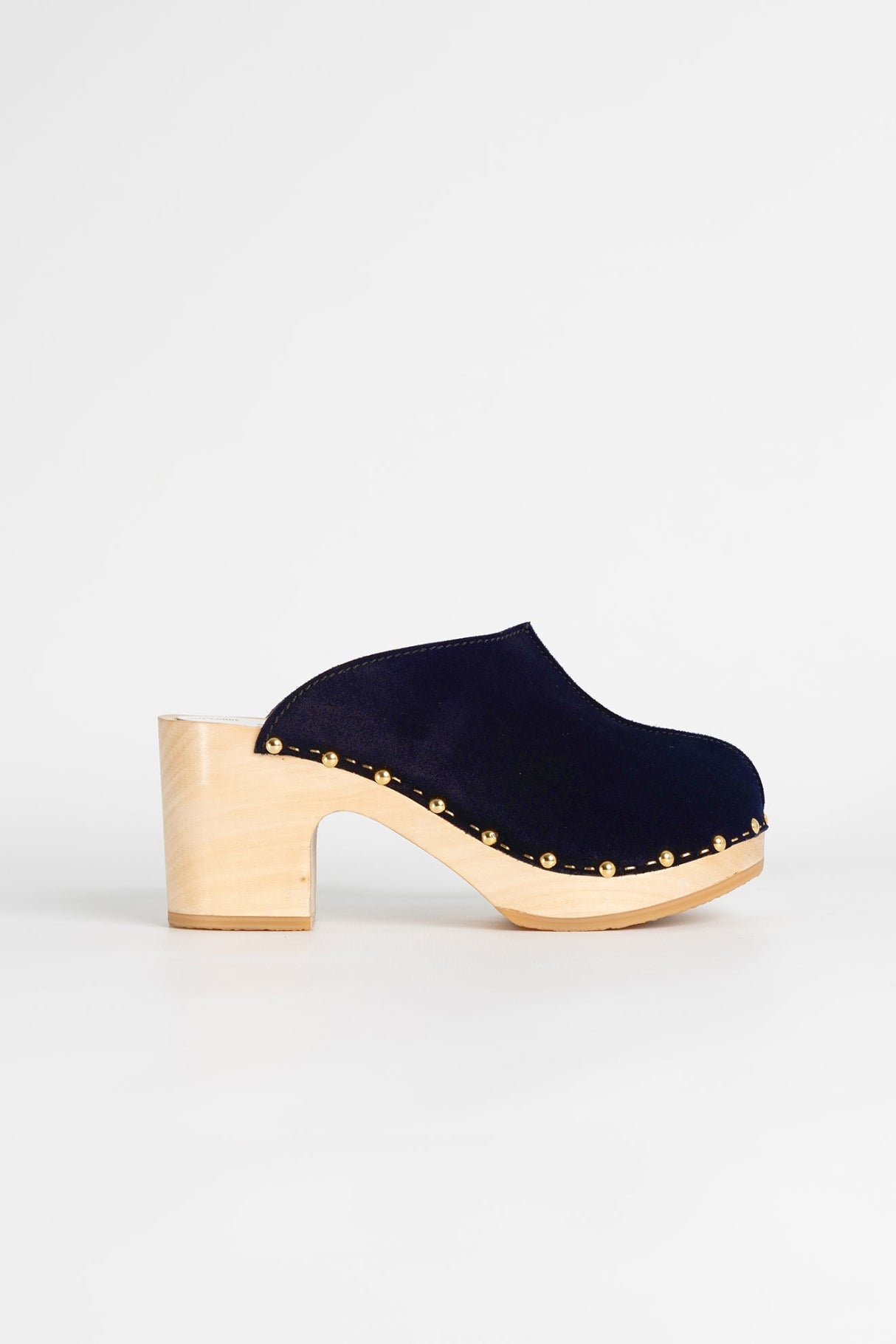 Profond et lumineux à la fois, le YNDIES VELVET MARINE joue la carte du contraste avec brio. Confectionné en croûte de vachette velours bleu marine, doublé en pleine fleur de veau, il séduit par sa teinte élégante et sa texture subtilement veloutée. Sa couture inversée sur le dessus lui donne un charme discret, tandis que sa semelle en bois de tilleul clair apporte lumière et modernité à l’ensemble. Son talon de 7,5 cm élance naturellement la silhouette tout en garantissant confort et légèreté. Les 42 clous dorés semi-bombés, posés à la main, viennent ponctuer ce sabot d’un éclat raffiné. Facile à enfiler, il traverse les saisons avec style, des tenues casual aux silhouettes plus travaillées.