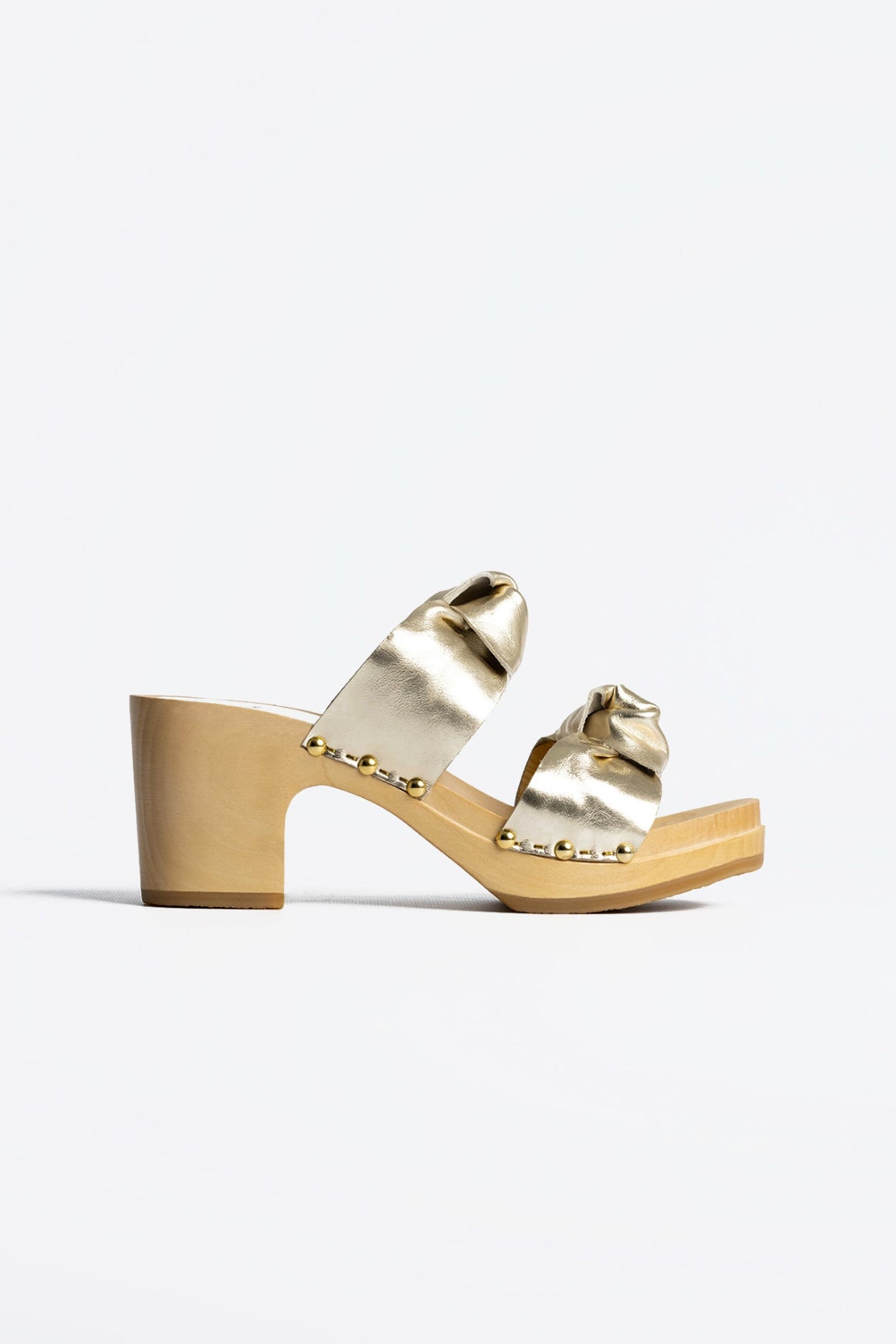 Les sabots mules YNOUI LAMINATO, fabriqués en cuir de vachette pleine fleur à tannage végétal, sont composés de deux lanières relevées par de jolis noeuds et enveloppant le pied pour un maintien parfait.
