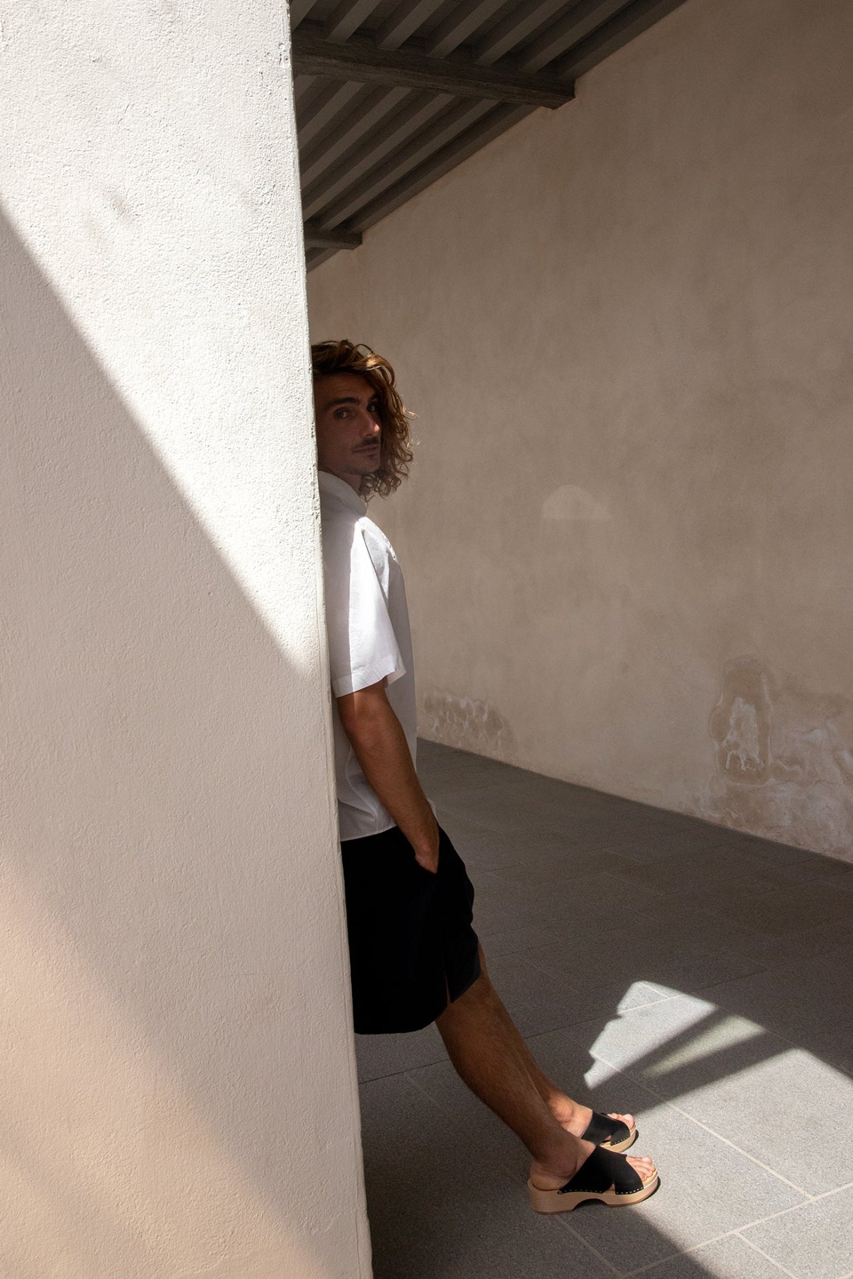 Les sabots pour homme YOAN, fabriqués en cuir de vachette pleine fleur à tannage végétal, sont composés de deux larges lanières croisées enveloppant le coup de pied pour un maintien parfait.