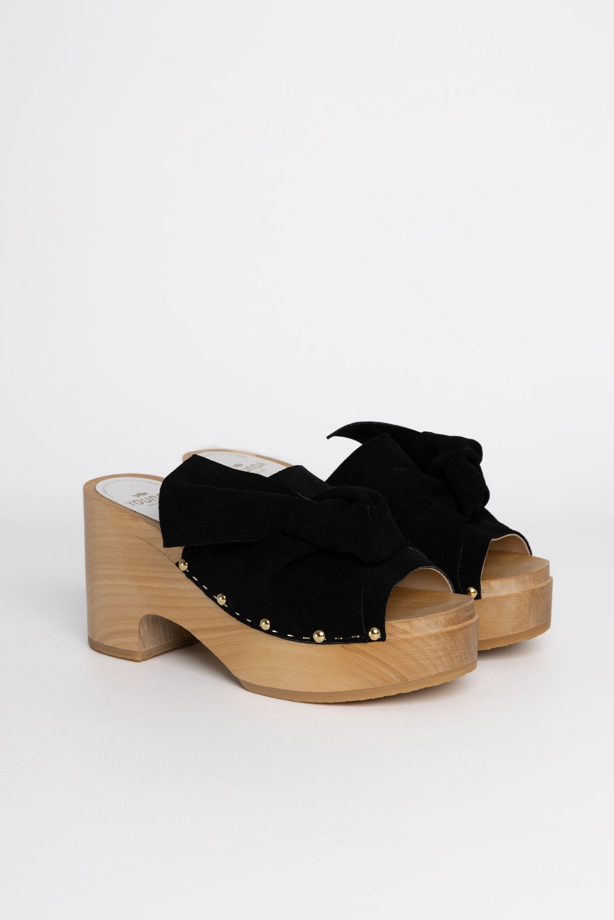 Les sabots mules YOJI VELVET, fabriqués en croute de vachette velours et doublés en cuir de veau pleine fleur, sont composés d'une large lanière relevée par un joli nœud oversized et enveloppant le pied pour un maintien parfait.