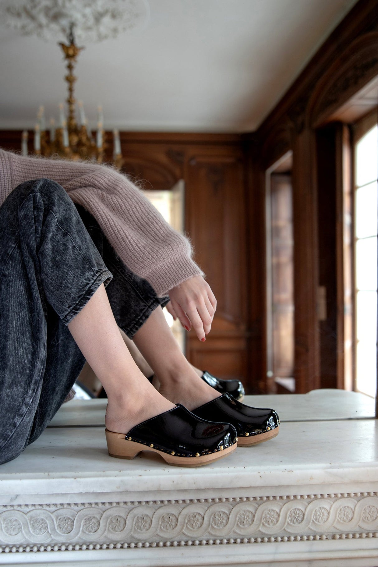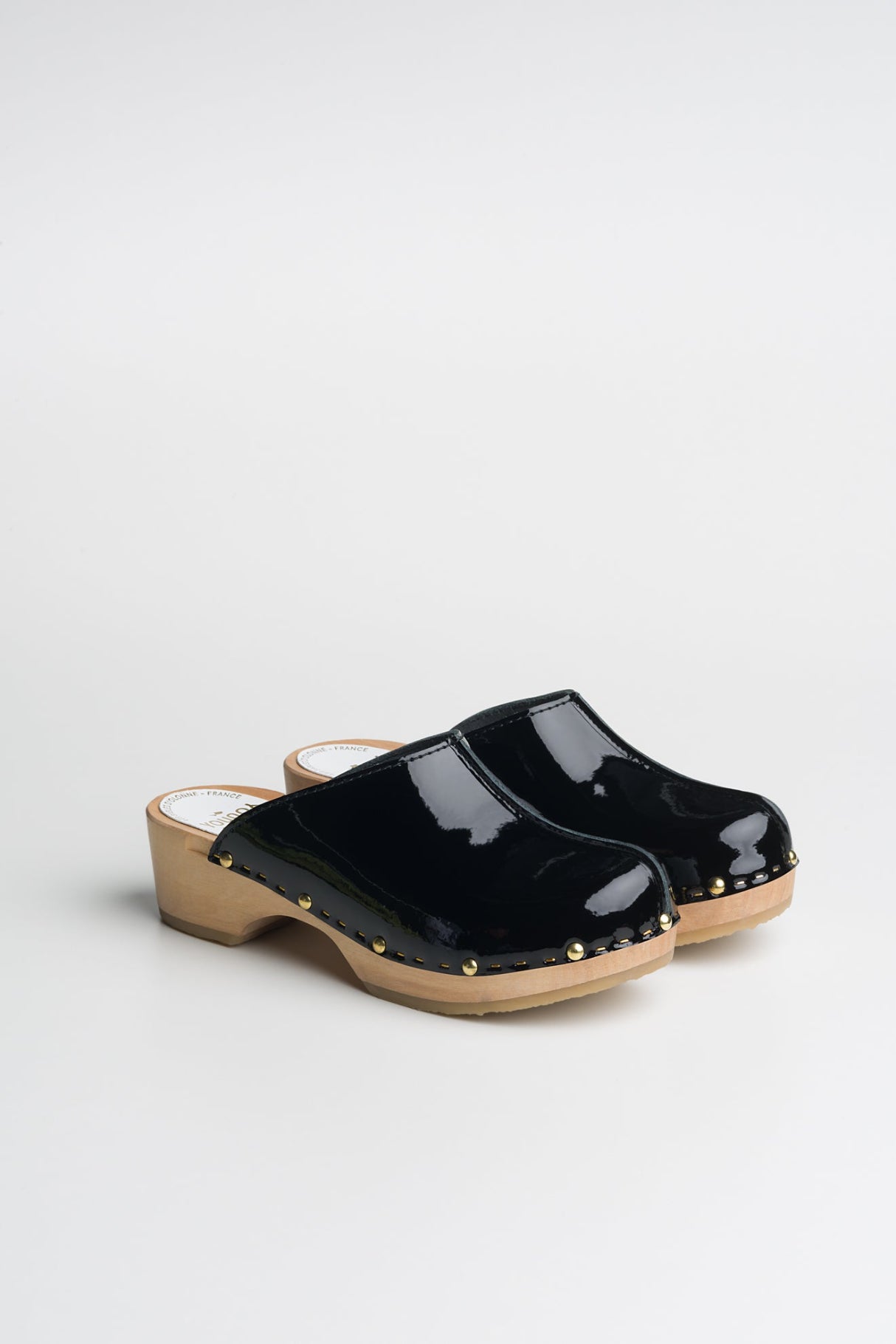 Les sabots YSSA VERNIS, fabriqués en cuir de vachette pleine fleur à tannage végétal recouvert d'un vernis minéral, sont relevés d'une jolie couture inversée sur le dessus.