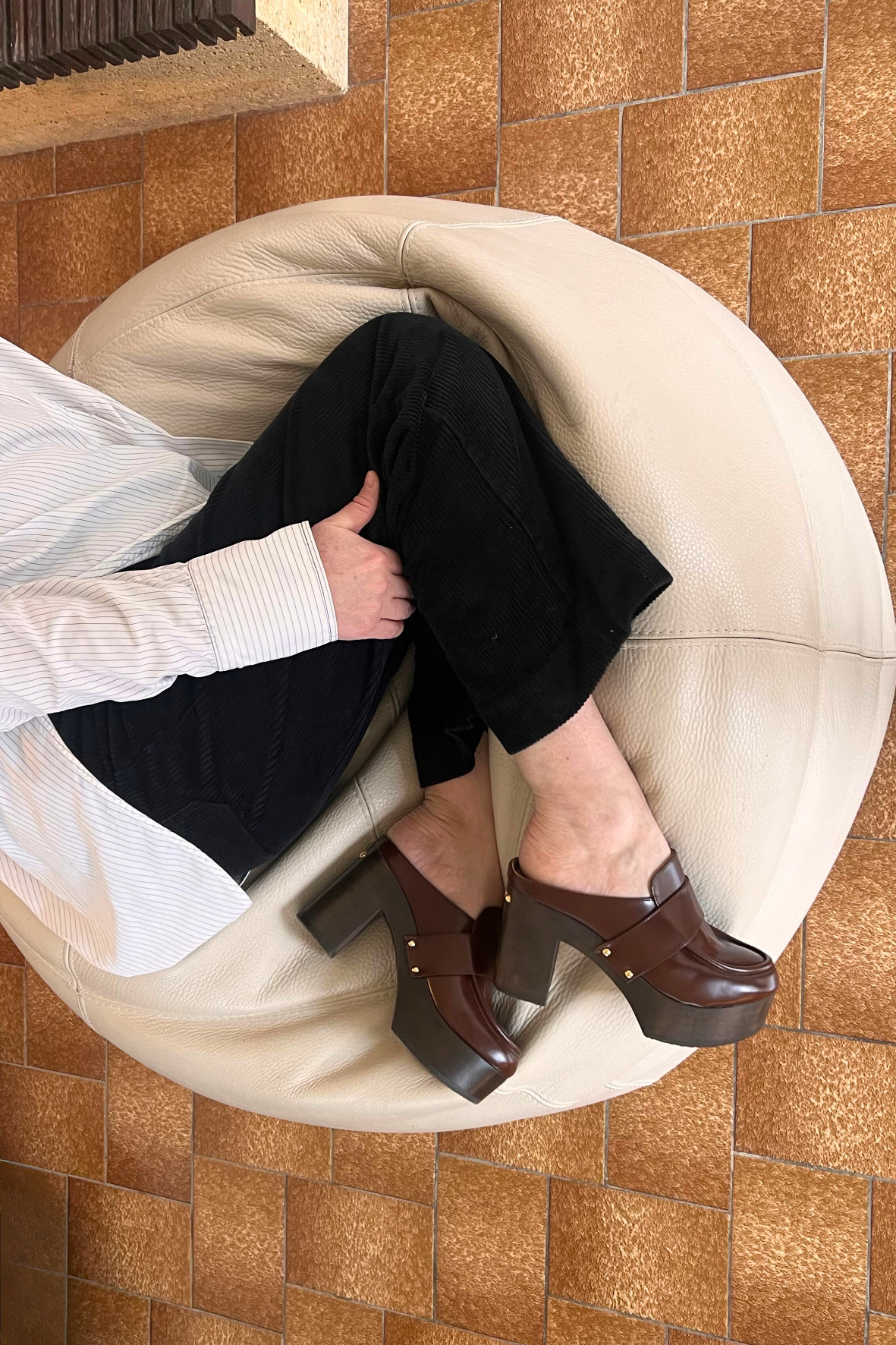 Le YUKIMI COLLEGE BROWN puise son inspiration dans l’élégance intemporelle du mocassin et la revisite dans une version sabot pleine de caractère. Réalisé en cuir de vachette brun, doublé en pleine fleur de veau, il se distingue par son authenticité et la chaleur de ses teintes naturelles. Sa semelle en bois de tilleul ciré apporte légèreté et résistance, tandis que son talon compensé de 9,5 cm élance la silhouette avec aisance. Facile à enfiler, il se porte comme une mule moderne, légère et confortable, idéale pour rythmer vos journées. Les 8 clous semi-bombés et la plaque dorée YOUYOU, appliqués à la main, signent un savoir-faire artisanal unique. Plus qu’un simple sabot, une pièce durable et respectueuse de l’environnement, pensée pour sublimer vos looks avec sobriété et raffinement.